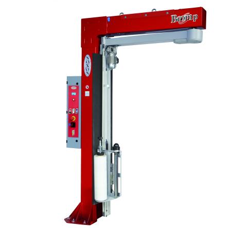 Boom P este masina de impachetat semiautomata Noxon cu brat rotativ, cu folie extensibila pentru stabilizarea sarcinilor instabile.